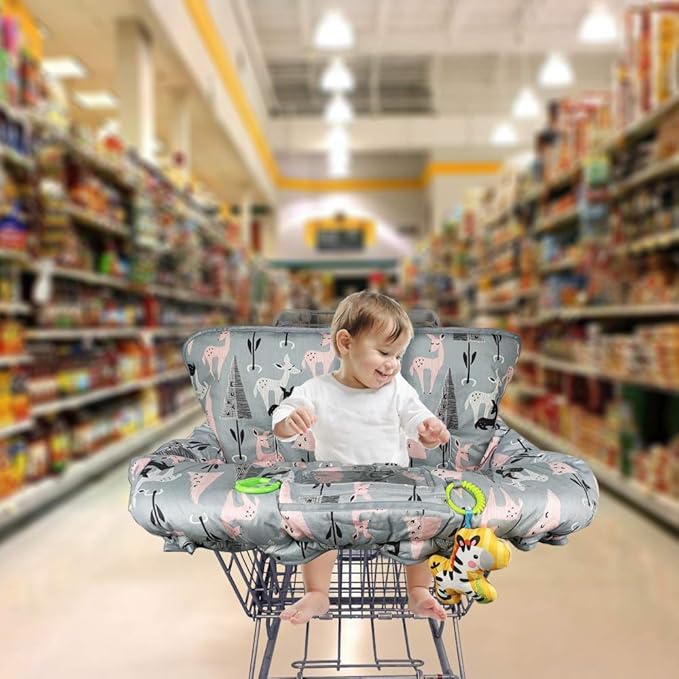 ICOPUCA Shopping Cart Cover, 2-in-1 cart Cover for Babies N high Chair Cover, Padded Grocery cart Cover for Baby boy Girl,with Split/Padded/Reversible seat Cushion, Deer