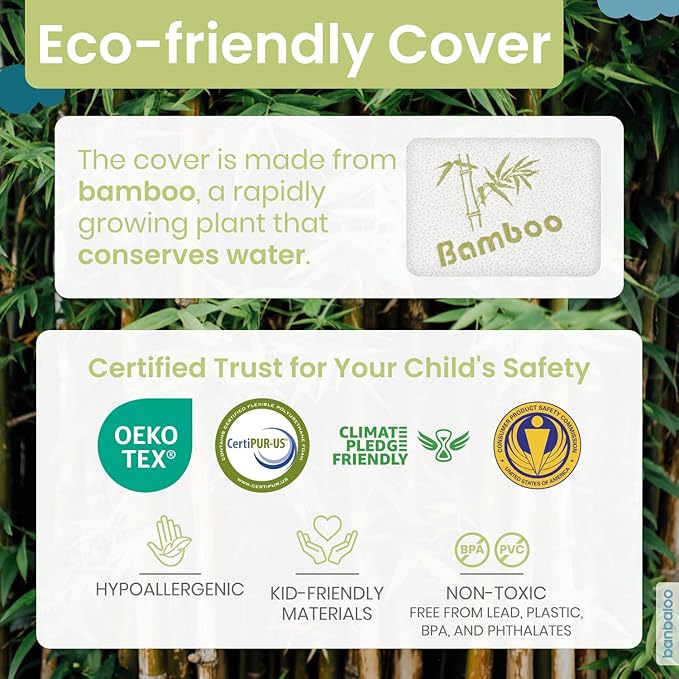 - ECO-FRIENDLY - The comfort and safety of your child don’t have to come at the expense of sustainability. We’ve designed our Premium Green bed bumper with eco-friendly and renewable rayon bamboo that’s sturdy, strong, and long-lasting. This way, you and your child get the quality product you need without harming the environment. Polyester 66%, Rayon Bamboo 34%.
