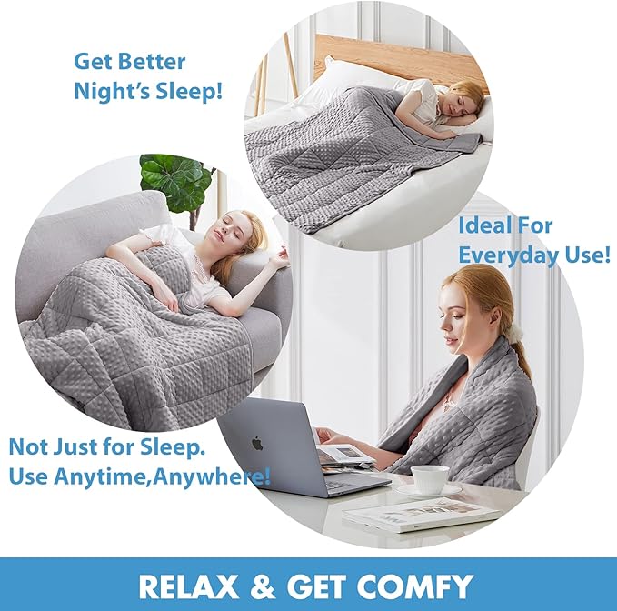 - 【USE ANYWHERE AND EASY CARE】: Our soft weighted blanket it's not just for sleeping, use it while reading on the couch or relaxing around the house.(Care instruction):Machine wash separately in warm or cold water. Good packing,it is the best gift for parents,friends and family