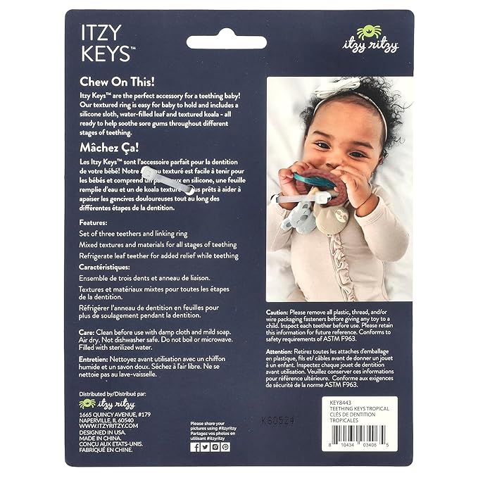 - TEXTURED TEETHING FUN: Itzy Ritzy’s teething keys offer an engaging experience with a mix of textures! The silicone sloth and koala are perfect for massaging sore gums, while the braided ring is easy for tiny hands to grasp. Teething relief has never been so cool!