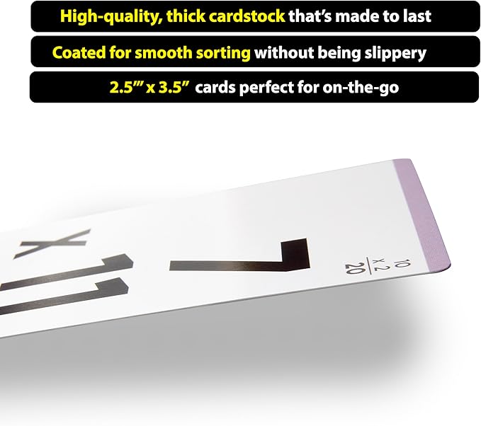 - β Premium cards have bold, large print with problems on one side and solutions on the other. Cards also include color coded addends, minuends, multiplicands and divisors for targeted practice.The travel size packs of laminated math flashcards are made from high quality card stock and come in extra-sturdy carton for storage. Each card includes one rounded corner for faster sorting and orientation.