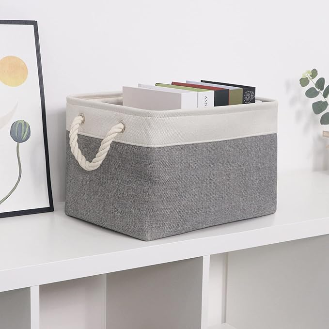 - 【Perfect Organizing Bins】 Storage for books, magazines, art & craft supplies, clothes, shoes, toys, seasonal items, games, holiday ornaments, baby products, and more in the home or office. Makes a thoughtful gift for any holiday, housewarming, and more. Ideal toy bins or grey shelf baskets for storage organizer shelves, bookcase, desk, and more