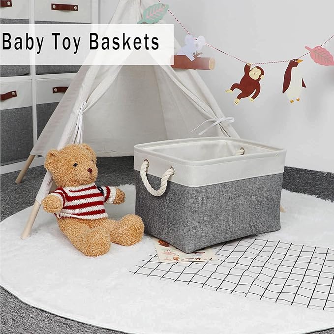 - 【Space-Saving, Easy to Move】 Our cloth storage bin baskets come with a foldable feature that allows you to save space when not in use and provides the convenience to bring along with you anywhere. Easy transport with rope handles; Easy for kids to place on the floor to grab their favorite toy in fabric bins