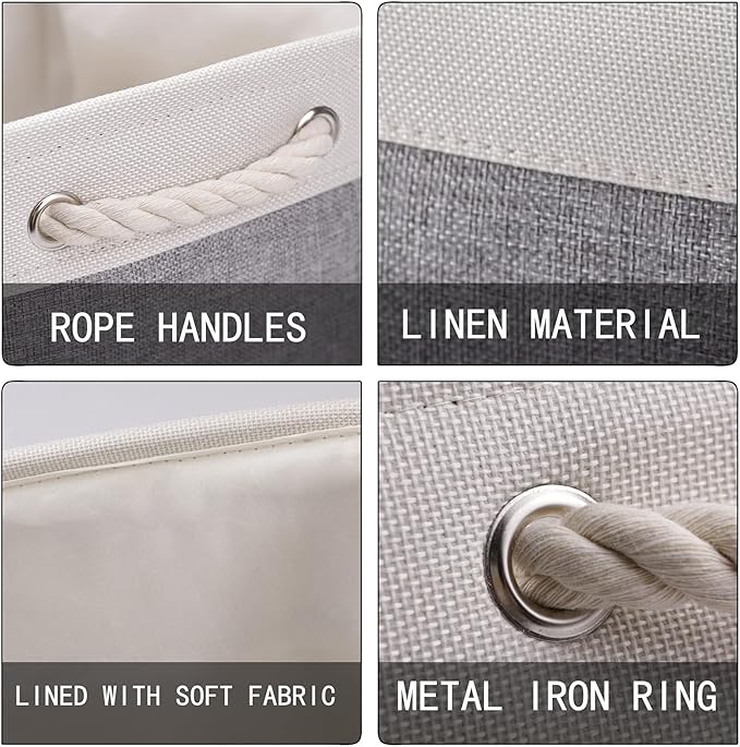 - 【Large Storage Baskets】 Dimensions (each): 15 (L) x 11 (W) x 9.5 (H) inches.Cotton rope handles.Made of durable linen and thicken environmental EVA for reliable performance. This collapsible storage basket, personalize your decorative storage bin combined with practical and ornamental forms that matched your lovely home