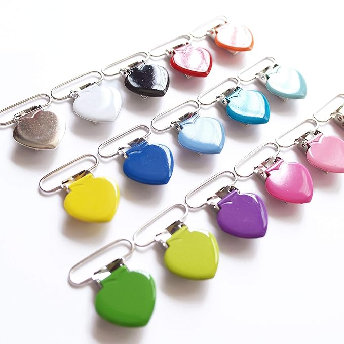 - Widely Application-These heart suspender/pacifier clips are perfect for making your pacifier holders, bib or mitten clips holder ,braces suspender trousers clips ,sewing or ribbon crafts.