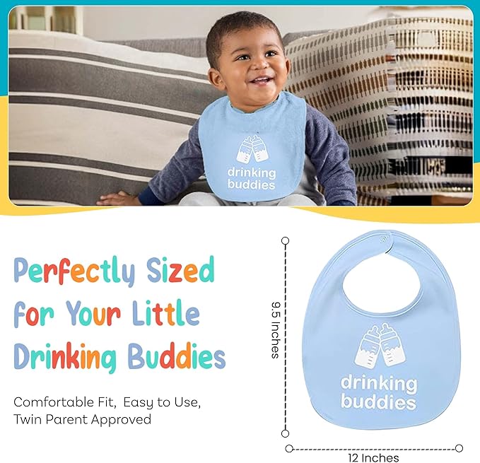 - Adorable & Fun Twins Baby Gifts- These Twin bibs set are great for creating memories, sharing cuteness with friends and family, and taking twin keepsake photos - Drinking Buddies Bibs are the perfect twin baby shower gift