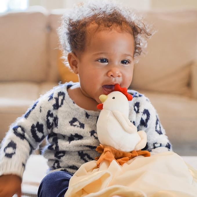 Chicken Lovey Blanket for Baby | Large 20" x 20" Baby Lovey for Girls or Boys | Cute Chicken Security Blanket for Babies and Toddlers