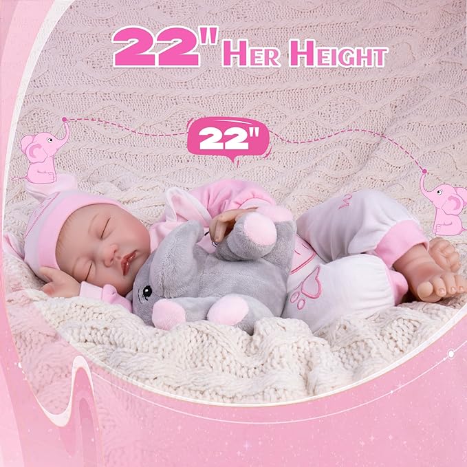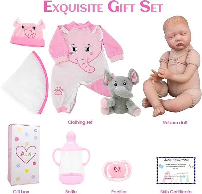 - AORI SINCERE WISHES:Ideal gifts for kids,personal accompany for the elderly and Alzheimers,great choice for collection.Our 22 inch reborn doll will be a nice gift for anyone ages 3+.Just trust in Aori baby girl doll with elephant accessories and take this baby girl to your home which will bring endless joy and laughter everywhere.