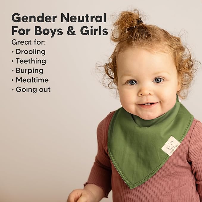 - 8-Pack Baby Bandana Bibs - KeaBabies Organic Drool Bibs come in gender-neutral shades to easily match your baby’s daily outfit. The soft and breathable fabric of these absorbent baby bibs ensure your little one stays cool while drooling and teething.