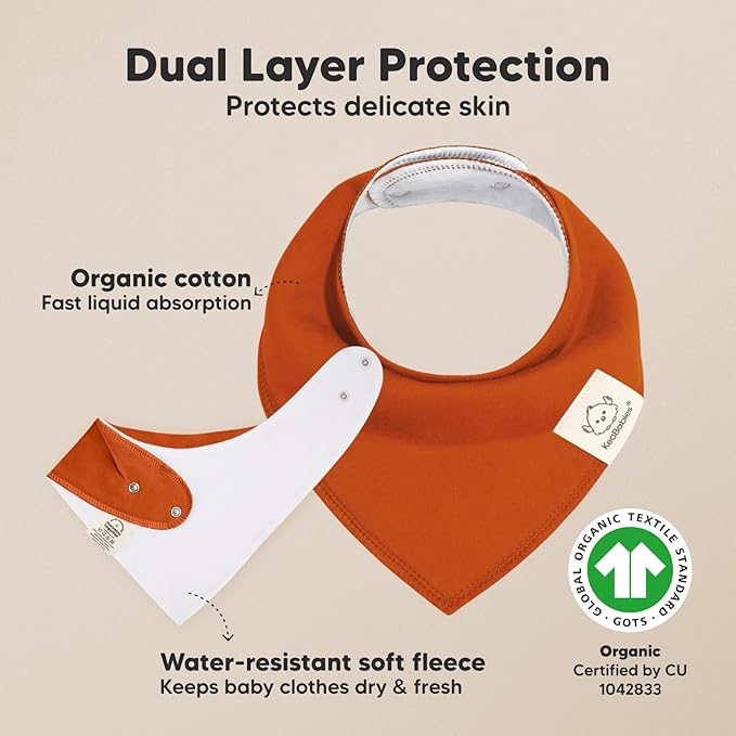 - Highly Absorbent - Our bandana bibs for baby boy feature a dual-layer of GOTS Organic Cotton for optimal absorption and backed with soft polyester fleece for extra protection. Easy to clean, ideal for daily use. Machine wash and tumble dry low.