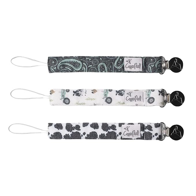 - FASHION MEETS FUNCTION: Copper Pearl pacifier clips offer a sleek design that complements any of your baby's adorable outfits. Whether you need paci clips baby girl or boy pacifier clip, each set of three binky clip are a versatile solution.