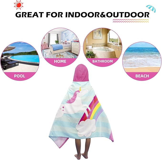 - Eye-Catching Design: We have so many cartoon animal friends for your children to choose from, such as mermaids, whales, dolphins, rainbows, unicorns, and so on, they are cute and funny. You can choose multiple bath towels for your children's role-playing. So this is the BEST GIFT for children. Put on this bath towel, children will get more friends and joy