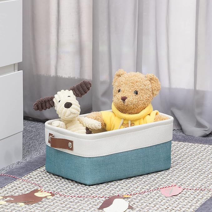 - 【Muliti-purpose Storage】Great linen storage baskets are available in a variety of colors, shapes, and sizes. small baskets as a space-saving organization. Sturdy rectangle baskets may be used to hold DVDs, magazines, books, shoes, clothes, towels, blankets, pet/dog toy storage, organizer storage for office supplies, gifts, baby bin. The decorative storage basket is ideal for the living room, bathroom, utility rooms, nursery, crafts, playroom, dorms, condos, laundry room, and under the bed