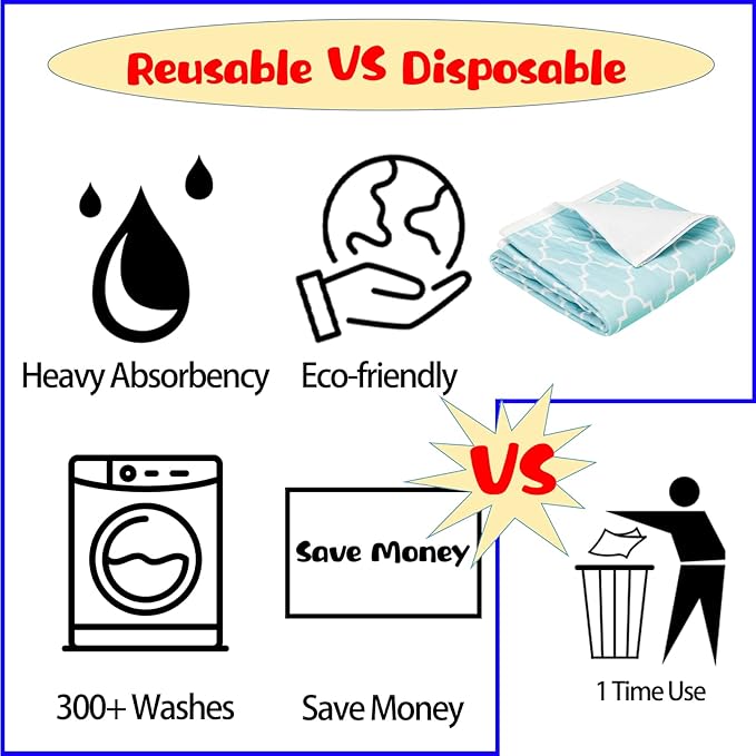 - MACHINE WASHABLE & EXTREMELY DURABLE: Built to last, this reusable incontinence bed pad withstands up to 300+ washes without losing its absorbency or waterproof integrity. Simply machine wash in warm or cold water for easy care. We proudly stand behind our product with dedicated customer support. If you have any questions, our after-sales team is here to help, ensuring your complete satisfaction