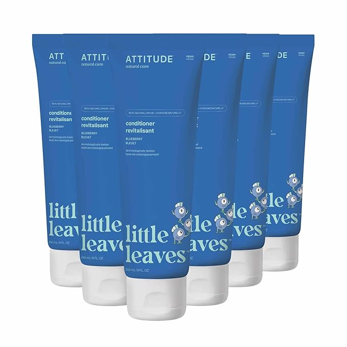 ATTITUDE Hair Conditioner for Kids, Dermatologically Tested Products, Plant- and Mineral-Based Detangler, Vegan, Blueberry, 8 Fl Oz (Pack of 6)
