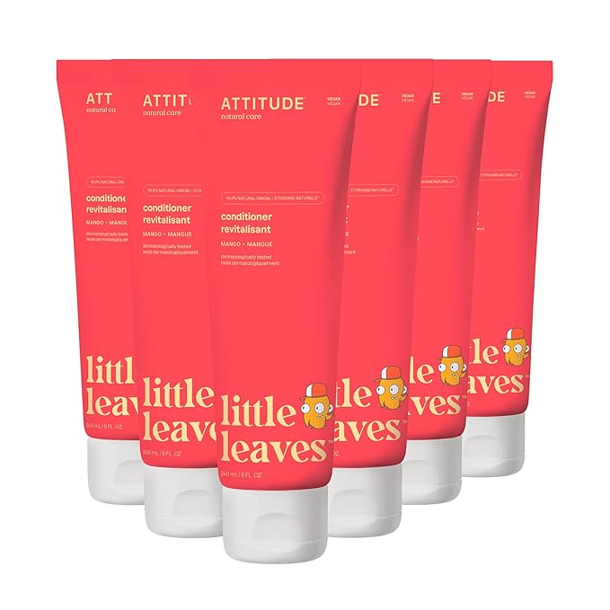 ATTITUDE Hair Conditioner for Kids, Dermatologically Tested Products, Plant- and Mineral-Based Detangler, Vegan, Mango, 8 Fl Oz (Pack of 6)