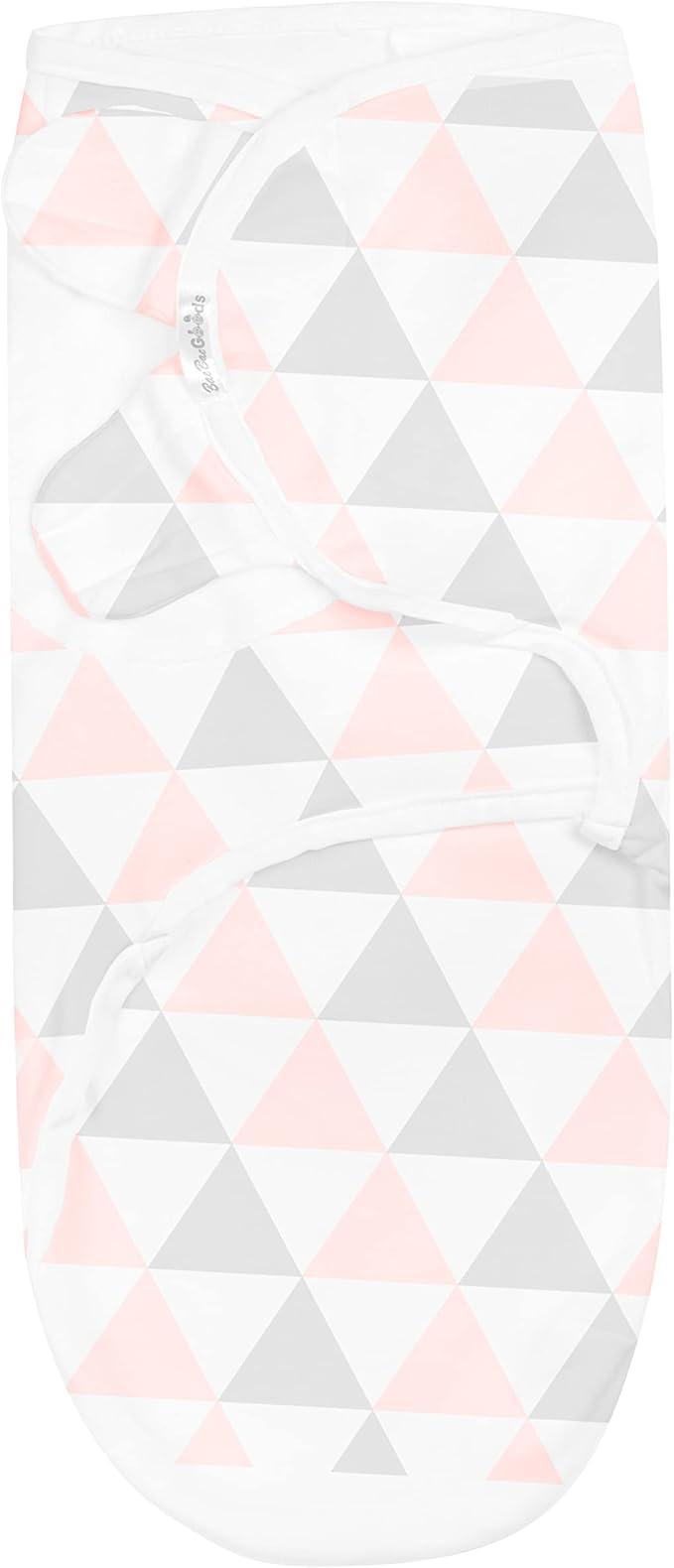 BaeBae Goods Swaddle Blanket, Adjustable Infant Baby Swaddling Wrap Set of 4, Baby Swaddling Wrap Blankets for Boys and Girls Made in Soft Cotton (0-3 Months, Pink/Gold Stripes)