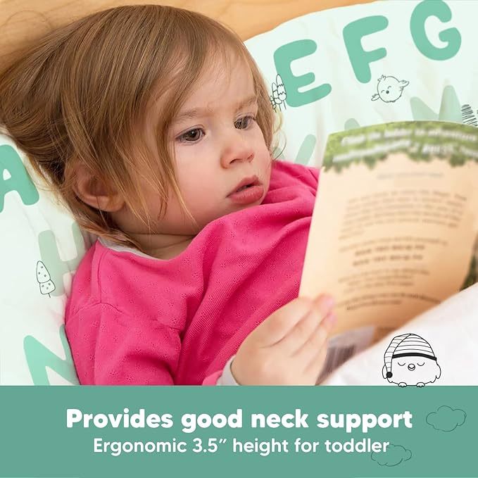 Toddler Pillow with Pillowcase - 13x18 My Little Dreamy Kids Travel Bed Pillows for Sleeping, Organic Cotton Small Pillowcase, Soft & Breathable, Machine Washable, Toddlers 2-5 years old (KeaABC Mint)