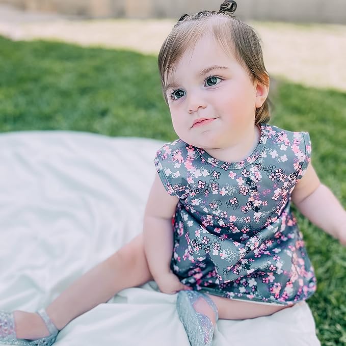 BapronBaby Ditsy Floral Bapron - No Neck Tie Safer Bib for Baby & Toddler - Soft Waterproof Stain Resistant - Machine Washable - Sz Preschool 3-5yrs