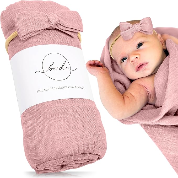 BWD Baby Swaddle Blanket – Ultra-Soft Bamboo Viscose & Organic Cotton Muslin – Lightweight, Breathable, Stretchy – Newborn Essential 47" (Dusty Rose)