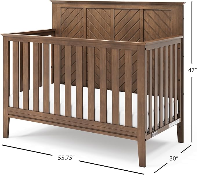 - Assembled Dimensions: Crib measures 55.75" L x 30" W x 47"H assembled. Tools and instructions for assembly included