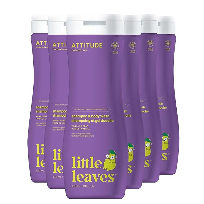 ATTITUDE Shampoo and Body Wash for Kids, EWG Verified Hair and Body Cleanser, Dermatologically Tested Soap, Plant and Mineral Based Bath Products, Vegan, Vanilla & Pear, 16 Fl Oz (Pack of 6)