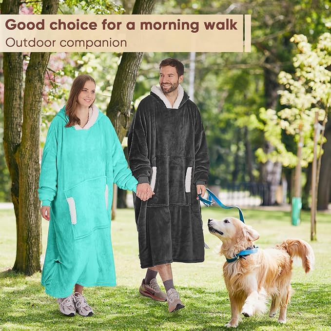 yescool Wearable Blanket Hoodie - Gifts for Women Her Girlfriend, Birthday Christmas Gifts For Mom, Oversized Flannel Sherpa Blanket Sweatshirt, One Size Fits All (Teal)