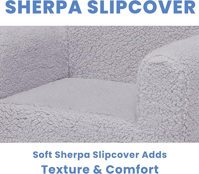 Delta Children Cozee Sherpa Chair, Reading, Arm Rest|Cushion Availability, Grey