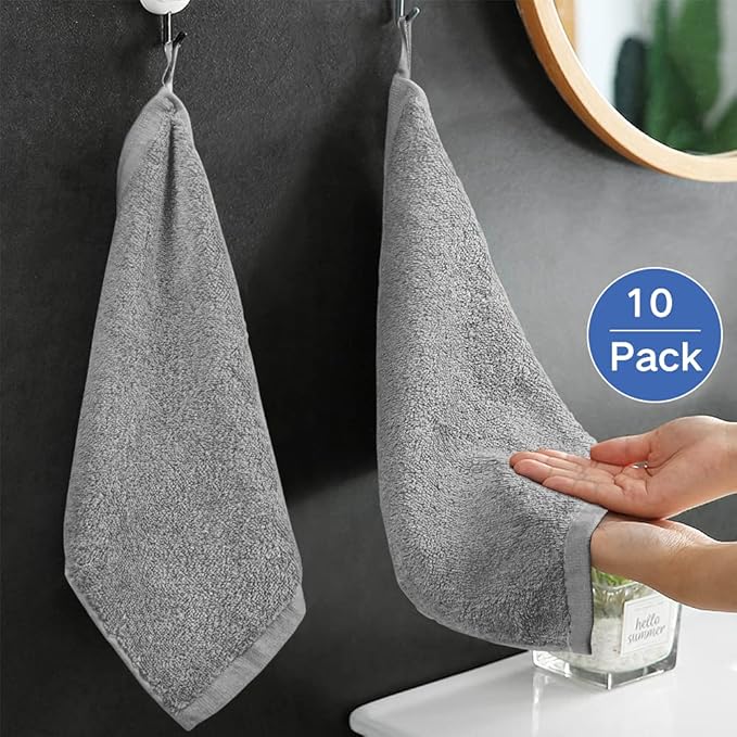 Yoofoss Luxury Washcloths Towel Set 10 Pack Baby Wash Cloth for Bathroom-Hotel-Spa-Kitchen Multi-Purpose Fingertip Towels & Face Cloths Light Grey
