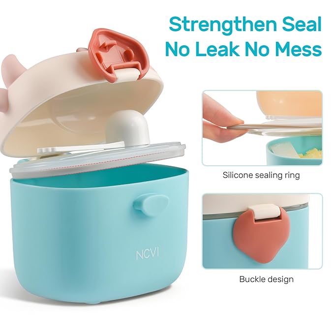 - 【Milk Powder Dispenser】The NCVI baby formula container is made of high food-grade PP plastic that is BPA-free, environmentally friendly, suitable for moist- heat and freezer safe as well. This milk dispenser for baby formula has two cute horns that are made from TPE soft material, which is round, soft and safe