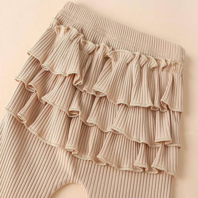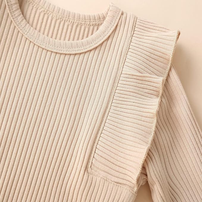 Fullfamous Baby Girl's 3pc Rib Frill Long Sleeve Romper and Pant Set