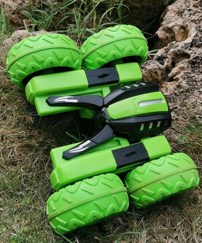 - LET'S PLAY TOGETHER: The car equipped with 2pcs powerful electric motors and 4pcs high-quality soft and elastic rubber tires (shock absorption, anti-skid, have good grip). Whether we are indoors or outdoors, to choose the right place, let's go, the stunt car will bring a different driving experience to your kids.