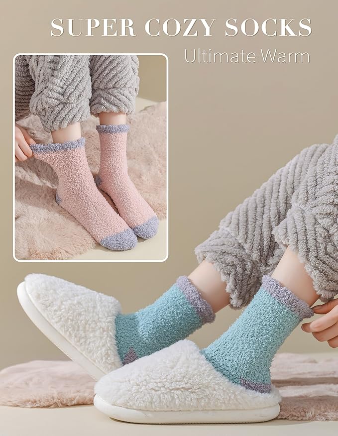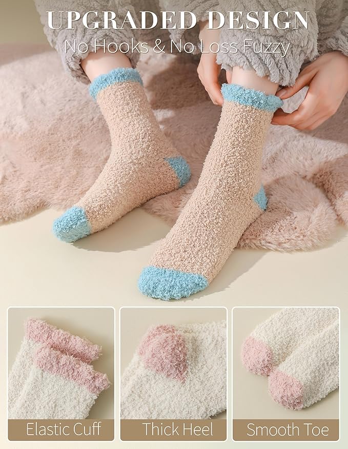 - Cloud-like Softness and Warmth: Indulge your feet with incredibly soft microfiber fuzzy socks that feel like stepping on a cloud, for exceptional warmth and coziness
