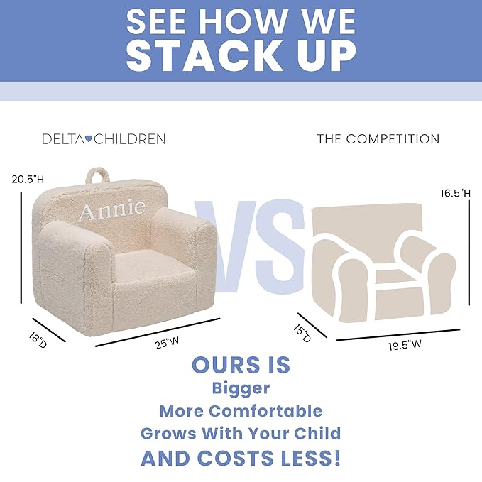 - PERFECT SIZE: Assembled dimensions: 25"W x 18"D x 20.5"H | Seat Size: 13"L x 15"W | Assembly required; foam inserts easily slip into the fabric cover | Recommended for ages 18 months+ | Meets or exceeds all safety standards
