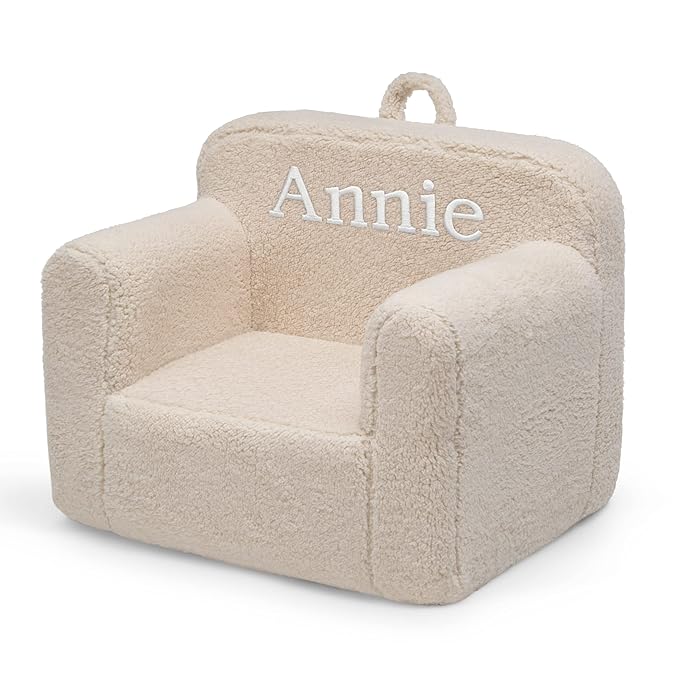 Delta Children Cozee Sherpa Chair – Customize with Name – Foam Kids Chair for Ages 18 Months and Up, Cream