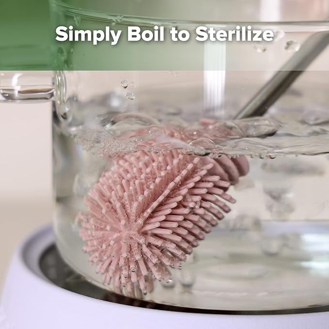 - Multipurpose Bottle Brush - Two different sizes of brush heads: ①Bottle Brush Head - perfectly-sized for scrubbing your baby bottles, breast pumps, and breastmilk storage bags. ②Angled Brush Head with an angled tip - reaches corners of your breast milk collectors, bottle teats and more.