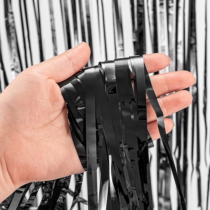 Foil Fringe Curtain Halloweens Party Decorations - Pure Black Tinsel Photo Backdrop Party Steamers Curtains for Birthdays Music Christmas Stranger Theme Parties