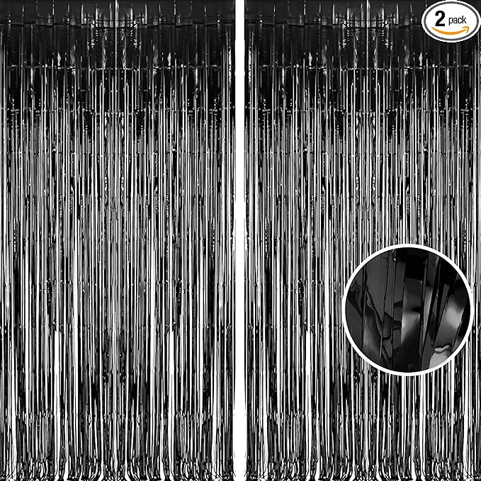 - Package Included: 2 Pack Foil Tassel Party Curtain Backdrops. If you want to make your tinsel backdrop curtain fuller and thicker, you can overlap two foil curtains.