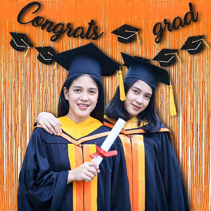 Foil Fringe Curtains Halloweens Decorations - Orange Tinsel Photo Backdrop Party Streamers for St Patricks Day, Easter, Birthdays, Fall, Pumpkin Theme, Thanksgiving, Basketball Party Decorations