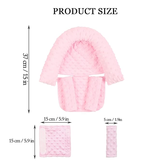 - Minky dotted fabric: The outside of the pillow is made of Minky dotted fabric, which helps to support the baby's head comfortably, and the seat belt guard can protect the baby from belt stimulation. Smooth and comfortable, can provide your baby with a safer and more comfortable car seat experience. 2 Seat belt shoulder guard: With a headrest, it can provide adequate protection for the baby's head and shoulders. Good choices will make your baby feel comfortable and happy!