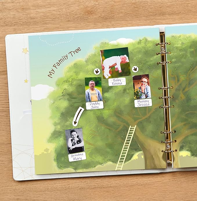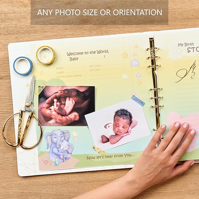 - Faux Leather Cover β Durable, attractive 12" X 12" leather-bound elephant baby album and memory book for boys and girls; 60 pages to keep your precious memories, from baby shower to age 5.