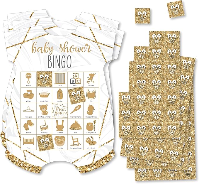 - MUST-HAVE PARTY SUPPLY: Bingo is an easy and classic baby shower game that everyone will have fun playing. It’s Twins - Shaped Picture Bingo Cards and Markers give this classic game a fresh look with baby bodysuit-shaped playing cards and baby related pictures instead of numbers.