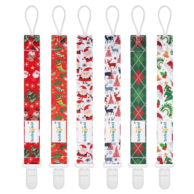 Babygoal Christmas Pacifier Clips, 6 Pack Binky Paci Holder and Leash for Boys and Girls Fits for Most Pacifier, Binkie Styles & Baby Teethers & Toys and Xmas Gift 6PB11