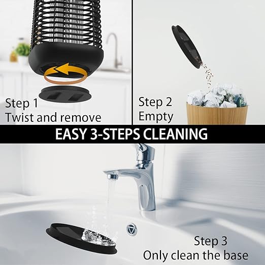 - 【Easy to clean】 Electronic mosquito zapper is easy to clean, removable bottom tray, come with a small brush which help cleaning the insect debris. Cleaning the base regularly after heavy use, just pull out the collection tray and get rid of the dead mosquito, flies and pests. Unplug the bug zapper before cleaning. Do not touch the electrical grid with wet hand or electricity conducting materials.