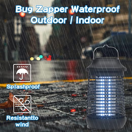 Bug Zapper Outdoor/Indoor,Mosquito Zapper 4200V High Powered Waterproof Electronic Mosquito Killer,15W UVA Mosquito Lamp Bulb,Fly Traps Patio Insects Killer,Trap Killer for Home,Kitchen, Backyard
