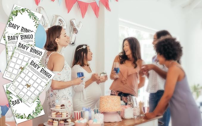Baby Shower Game Cards, Baby Bingo Game, Tropical Jungle Theme Party Cards for Gender Neutral Boys or Girls, Set of 30 Cards(Green006)