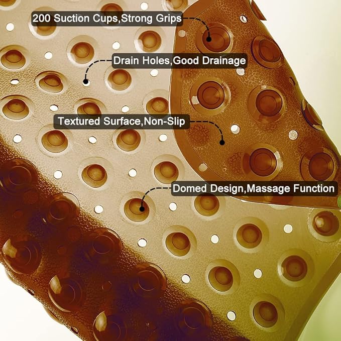 - OVERSIZED: Our extra large mat is 39 inch x 16 inch, 30% Longer than standard bath mats, which provides maximum coverage. A good drainage system consists of 176 drain holes that allow water to circulate. Enjoy a healthy better life with this bathmat on the tub or shower floor.