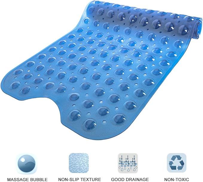 - OVERSIZED: Our extra large mat is 39 inch x 16 inch, 30% Longer than standard bath mats, which provides maximum coverage. A good drainage system consists of 176 drain holes that allow water to circulate. Enjoy a healthy better life with this bathmat on the tub or shower floor.