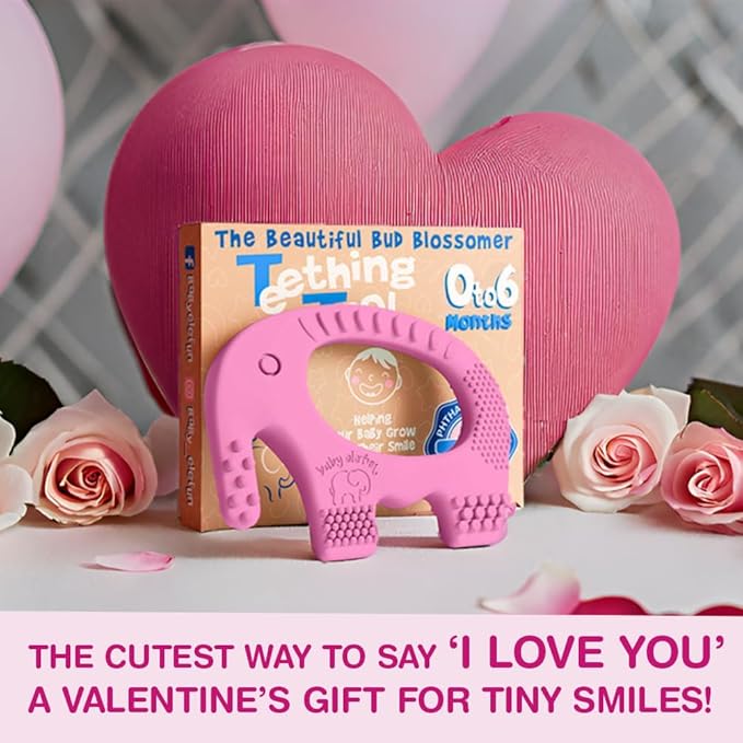 Cute Valentines Day Baby Gift - Baby Elefun Teething Toys for Babies Age 0 to 6 Months - 5X Pain Relief Smart Teether, Zero Developmental Delay Pink Silicone Teething Toy for Infants and Baby Shower