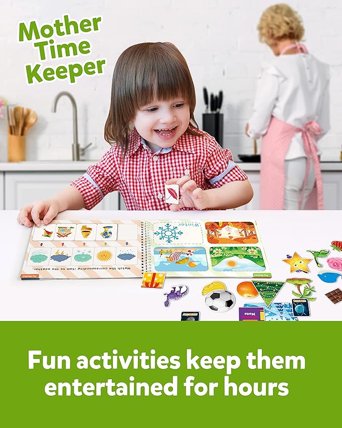 - Quality Safely Made: A versatile busy book is reusable for endless fun. Heavy-duty pages and large stickers are three layers lamination with magnetic backing, cardboard, and colorful PET film. Thick and sturdy enough to withstand repeated use and travel. A bold, burr-free magnet allows you to easily stick, remove and re-stick over and over again.